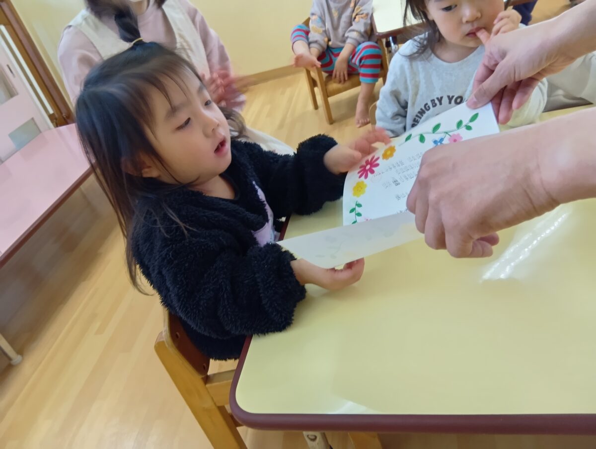 ことり組さん、ひよこ組1歳児さんに進級する子ども達。これからの成長も楽しみですね♪