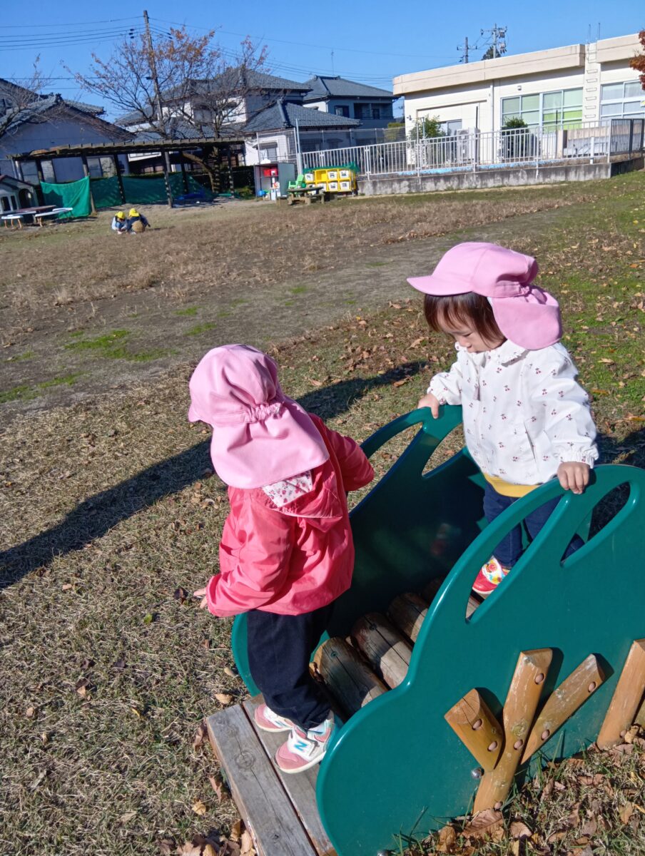 今日は朝からとっても良いお天気で、園庭遊び日和でした。
