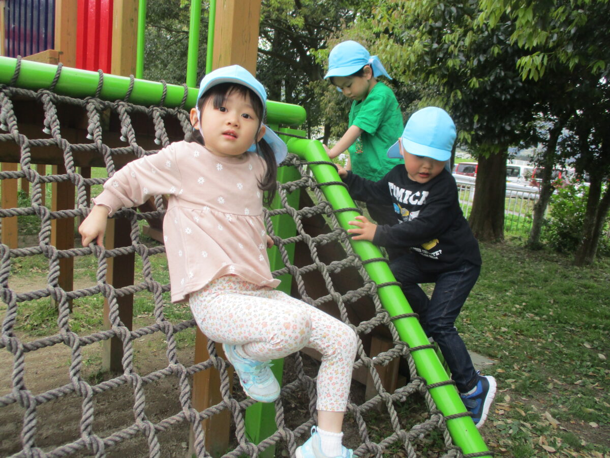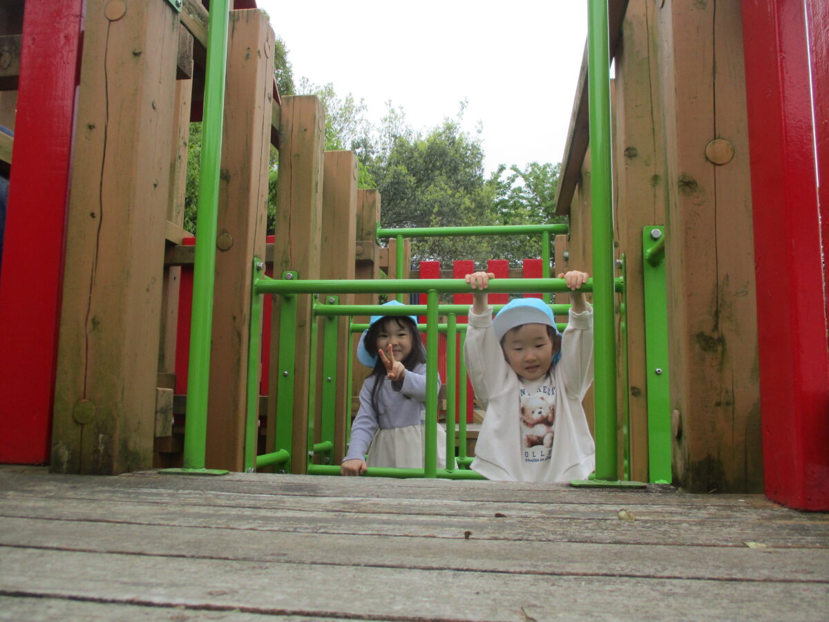 「せんせい、サルだよ~」「うきっき~」とサルになりきってジャングルジムを登っていました。