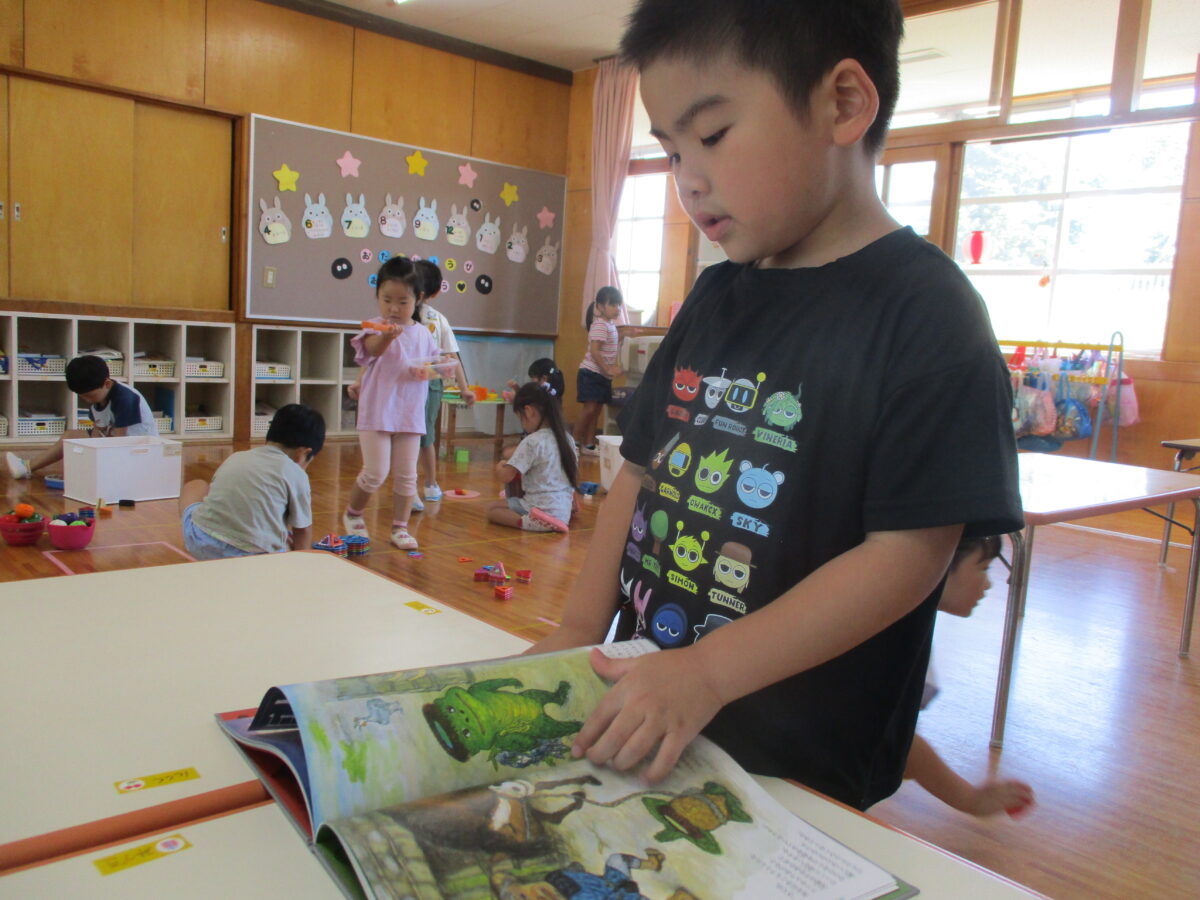 新しい絵本を購入してもらい、早速楽しんでいます。