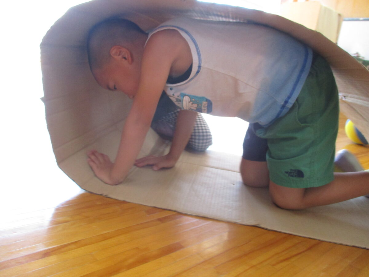 ハイハイ競争をしたり、ダンボールキャタピラをしたり、お遊戯室で思い切り身体を動かしたり、暑さに負けずに元気に過ごしています。