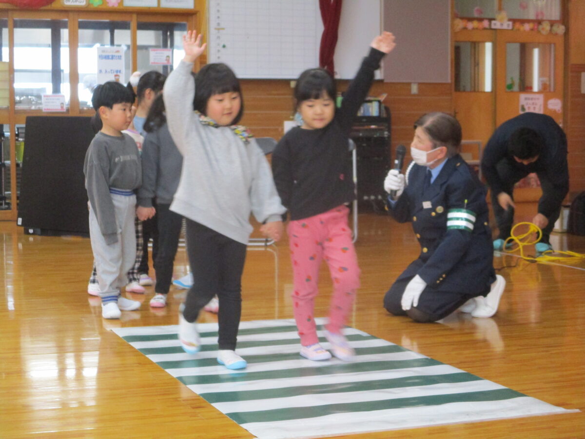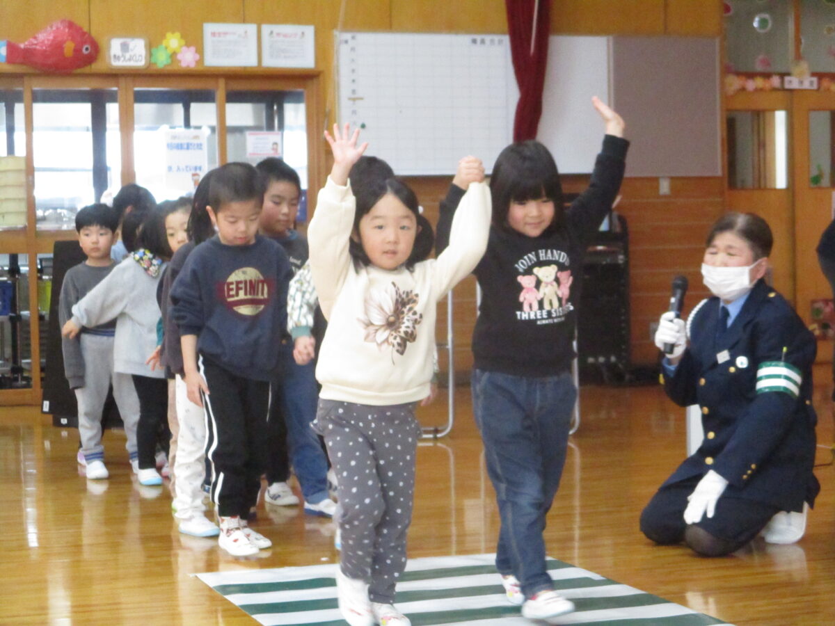 ほしぐみさんも交通安全教室に参加し横断歩道の渡り方を体験しました。