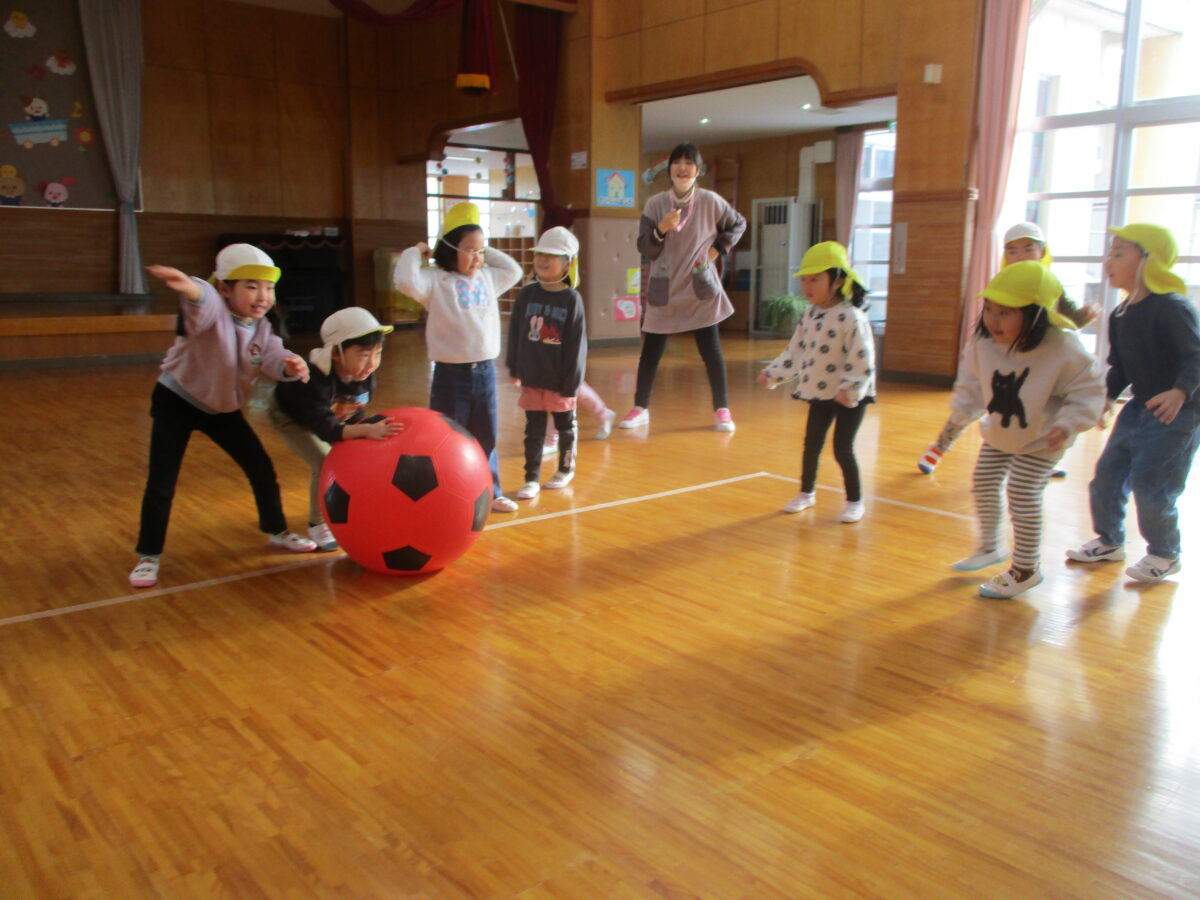 コロコロドッチボールも大人気です。だんだんルールも理解してくると、相手をねらったり、順番になげたり、とても白熱します。
