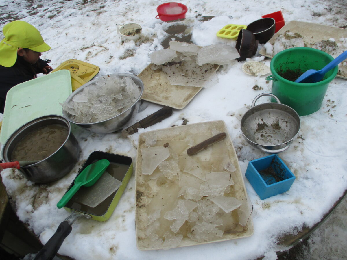 フィギュアスケートのようにくるくる回る子、一生懸命分厚い氷を割る子、それをおままごとをしている子に卸している子など様々な姿が見られ、とても楽しかったです。