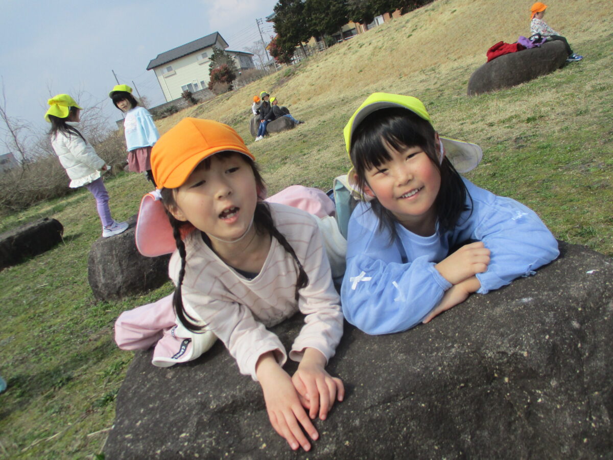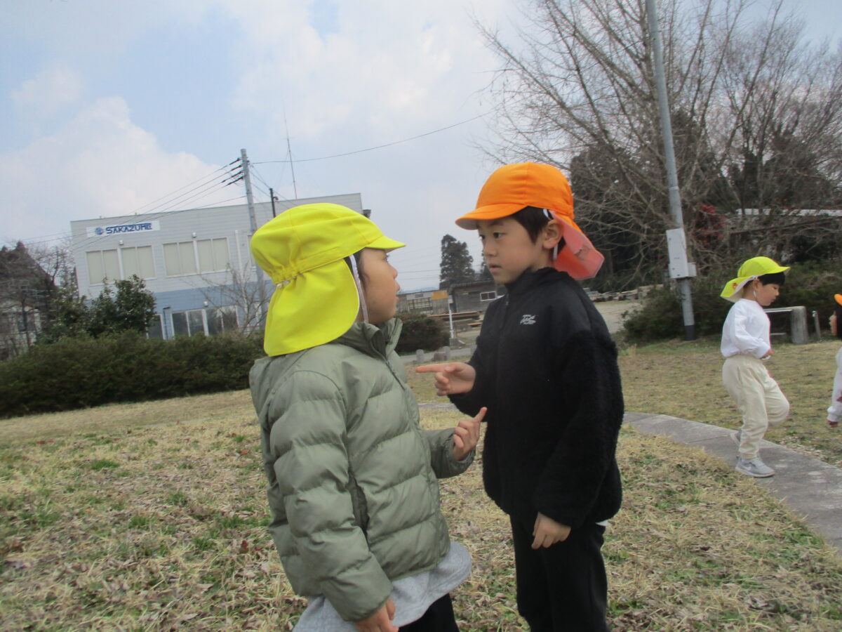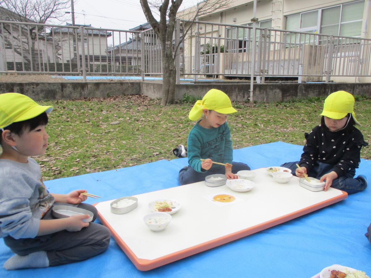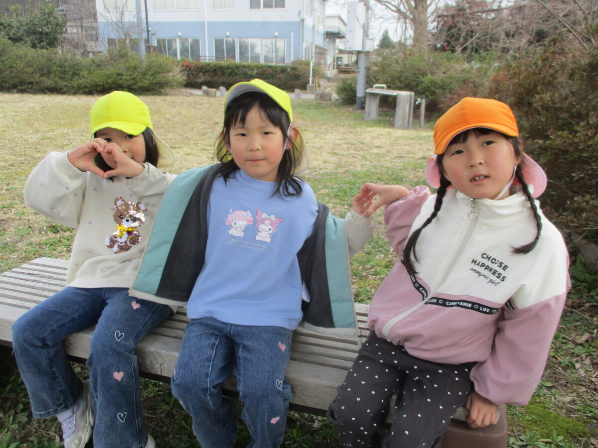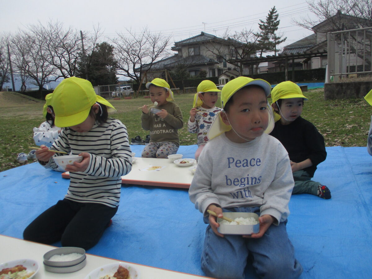 子ども達のリクエストでつき組さんと一緒にゴロゴロ坂にお散歩にいったり、お外で給食を食べて最後のほし組生活を楽しんでいます。