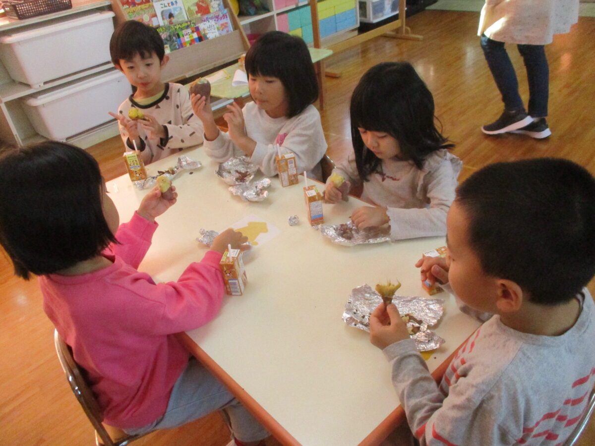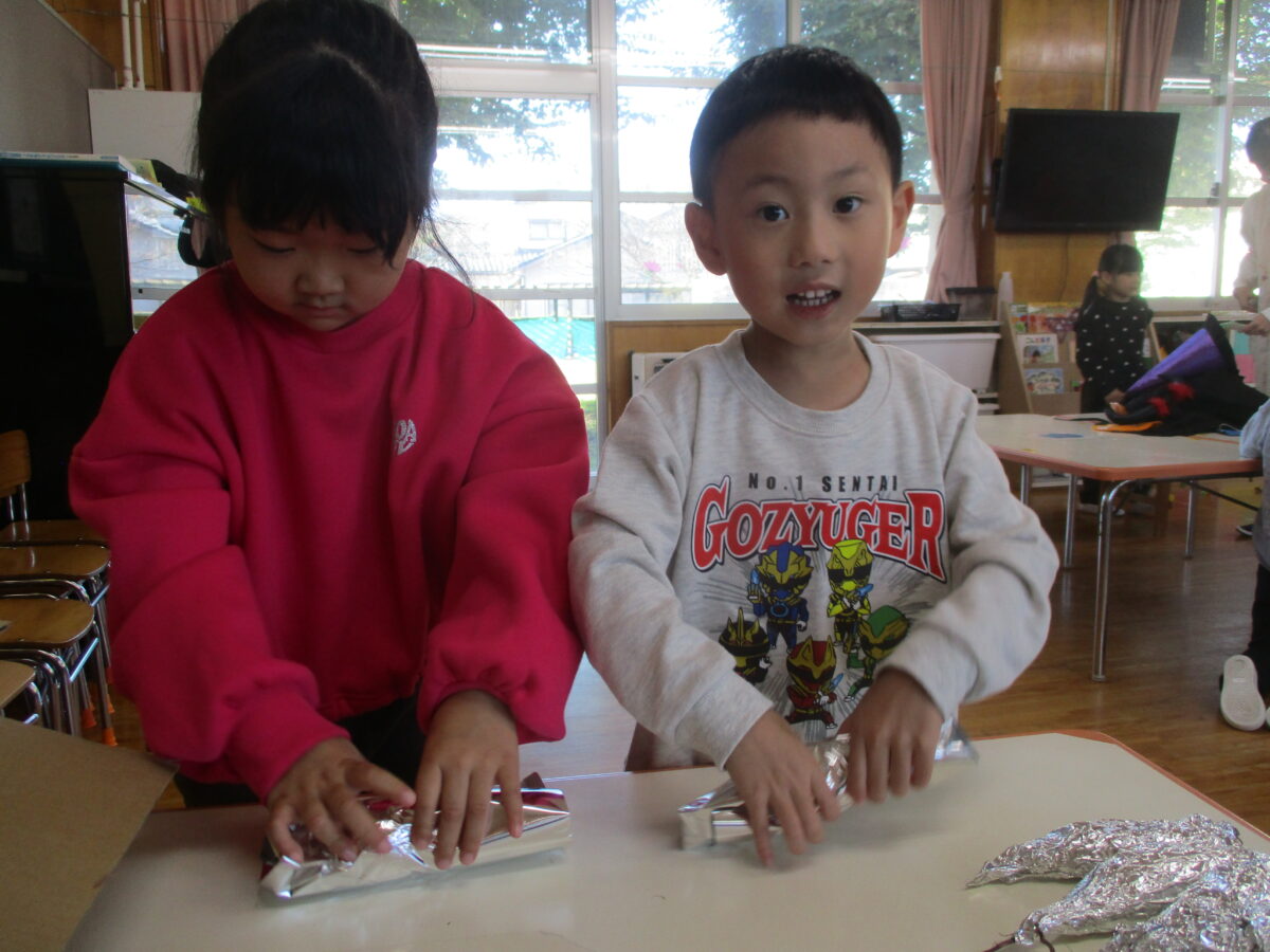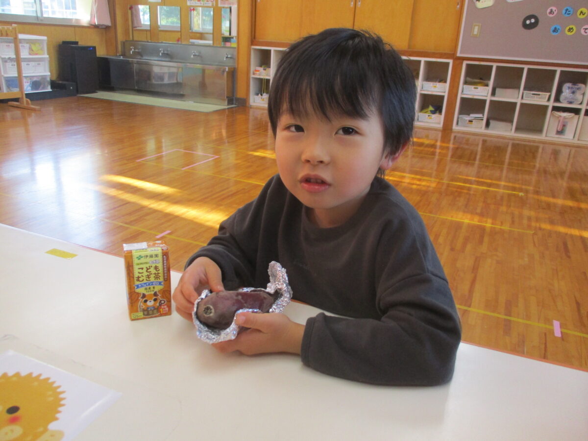 また、今週は「焼き芋会」がありました。自分たちで苗植え~収穫まで行い、今回アルミホイルで巻く作業も子どもたちが行いました。
