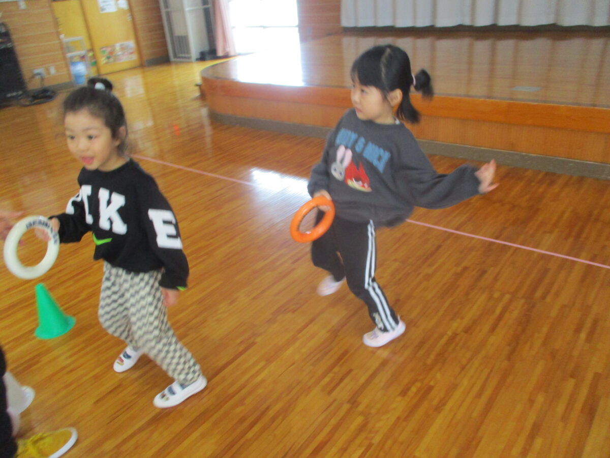 リトルコーンの内側を走る、バトンは同じチームのお友だちに渡す…。