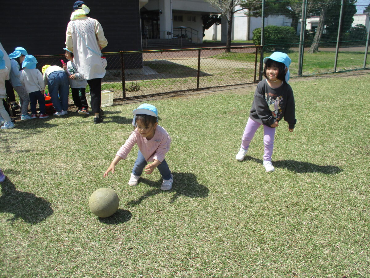 ボール遊びも楽しんでいました。‟お友達と一緒に”の楽しさを感じながら、ボールを追いかけていましたよ。