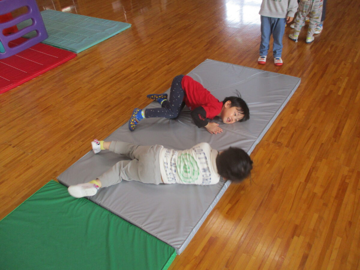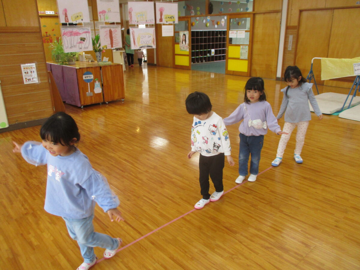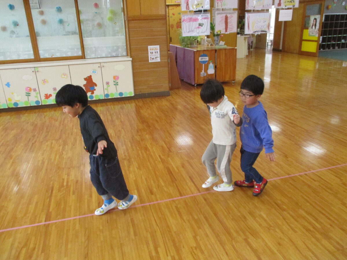 今日はほし組になって初めての運動遊びがありました。「もうすぐ運動遊びだ!」と少し前から楽しみにしていた子ども達。