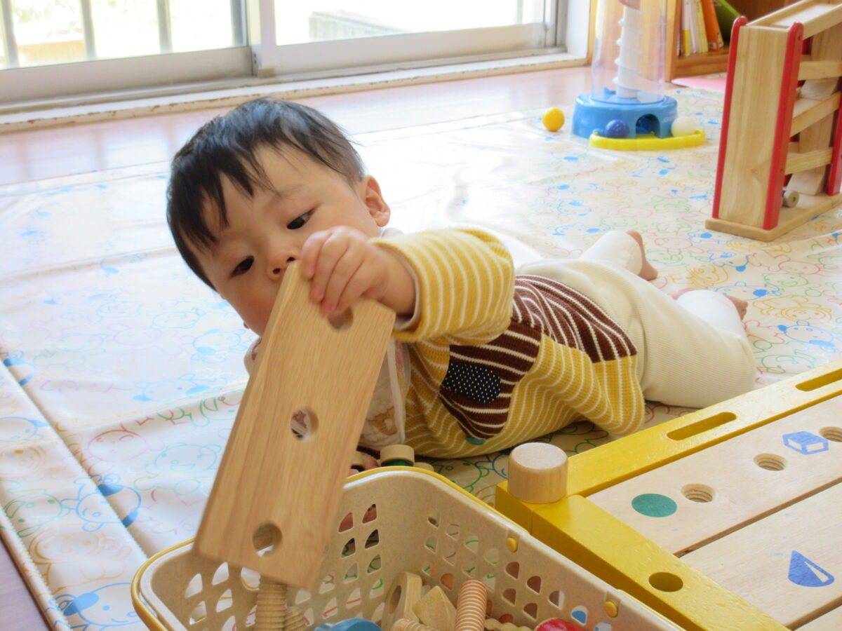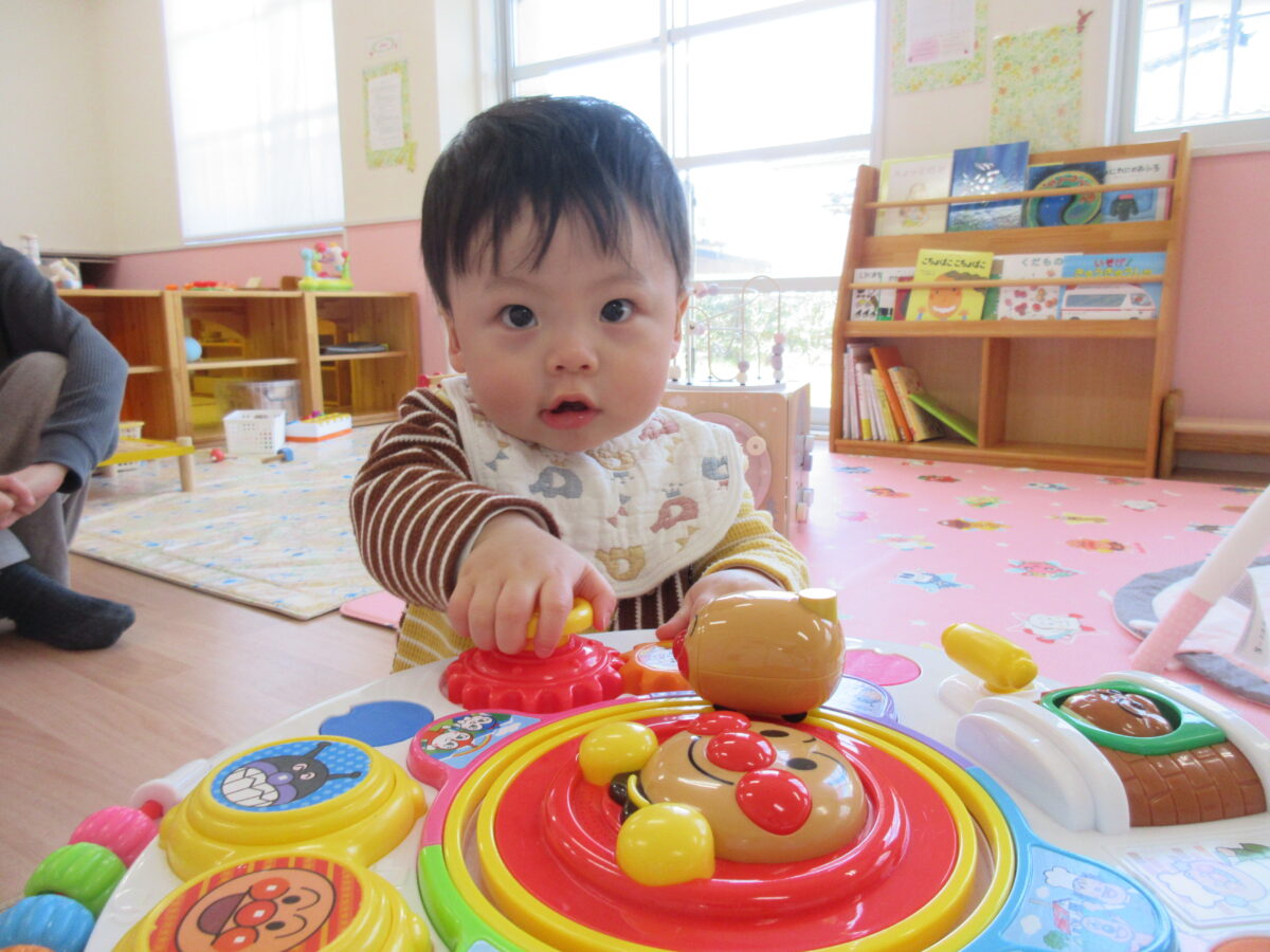いろんなおもちゃで遊んだり、滑り台でつかまり立ちも見せてくれましたよ。