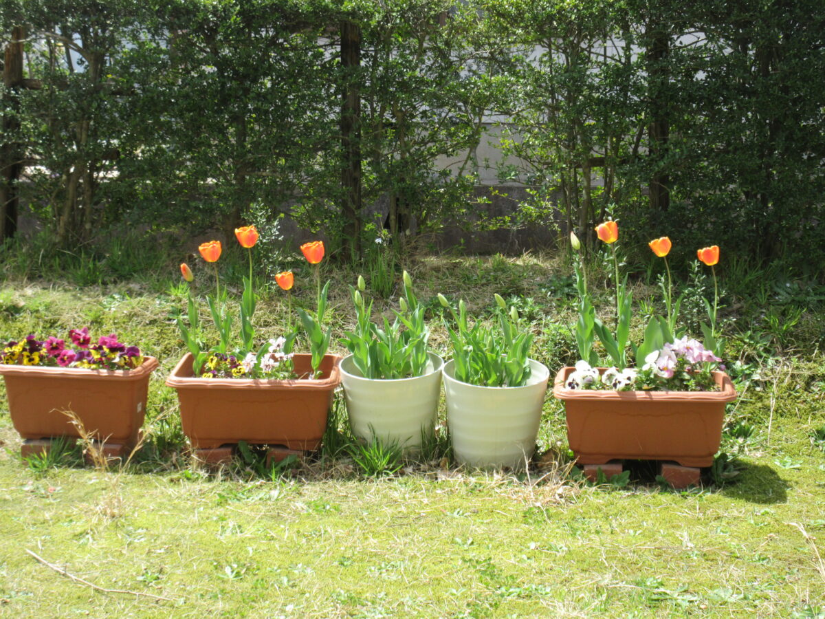 おひさまのお部屋から昨年の秋に植えたチューリップが咲き始めました。