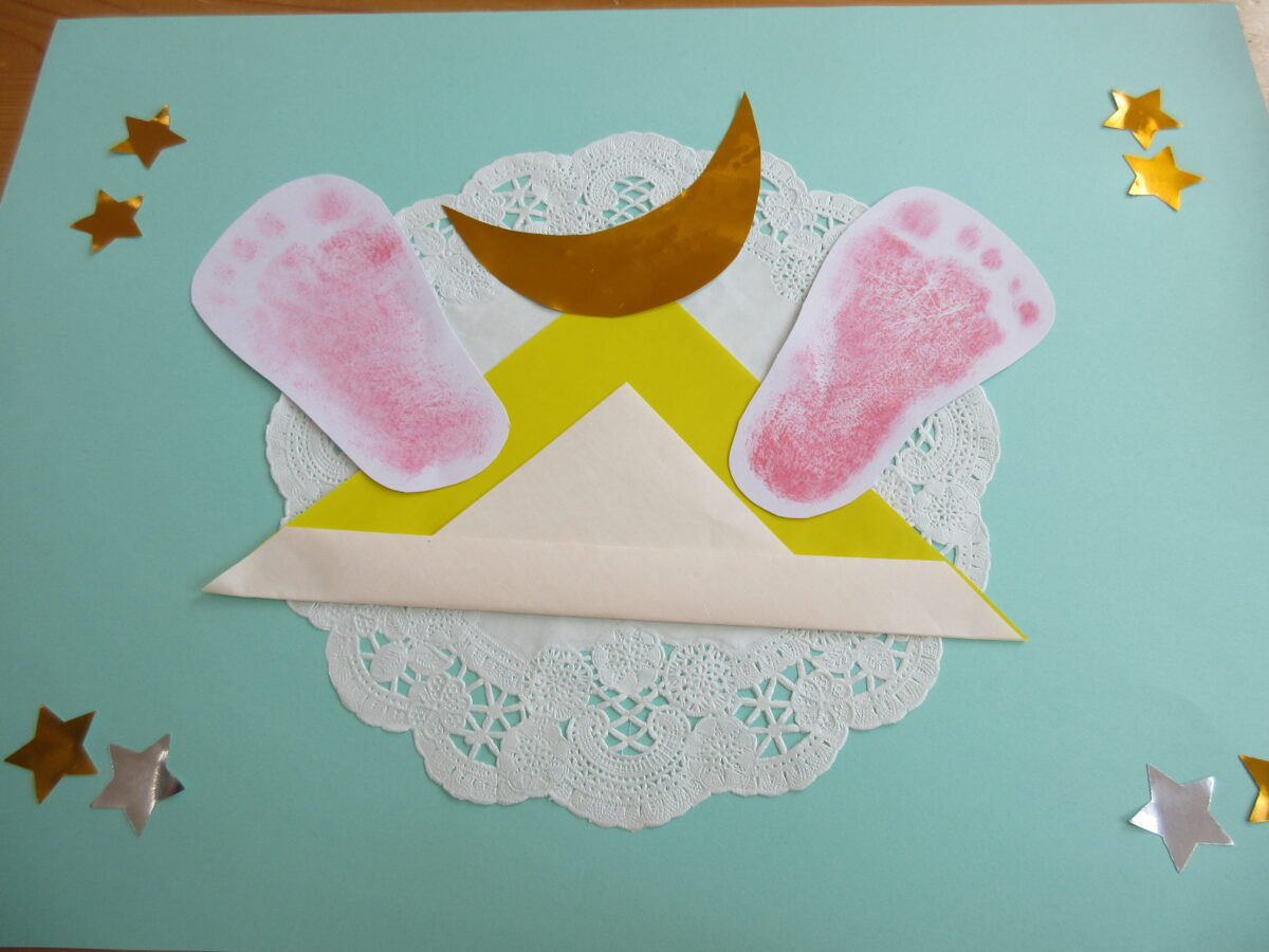 おはなしの会&親子製作においでいただきありがとうございました。かわいいお友だちの足形で兜を作りました。お家で飾ってくれると嬉しいです。