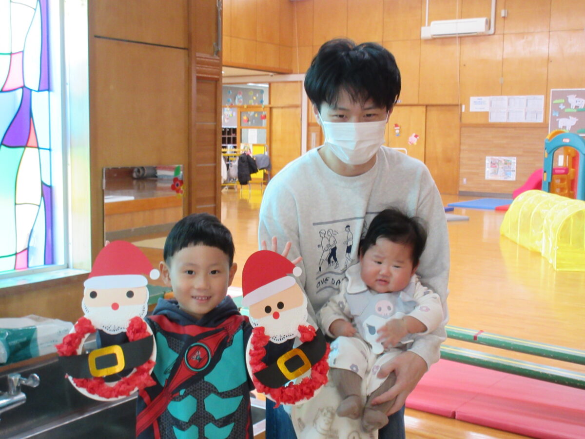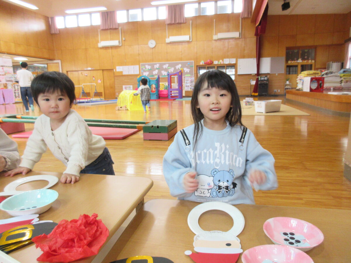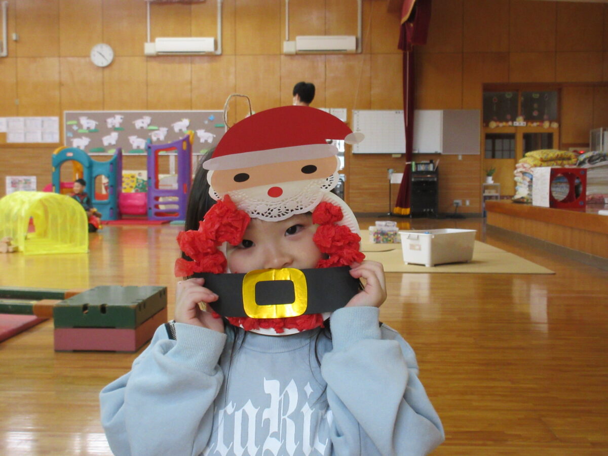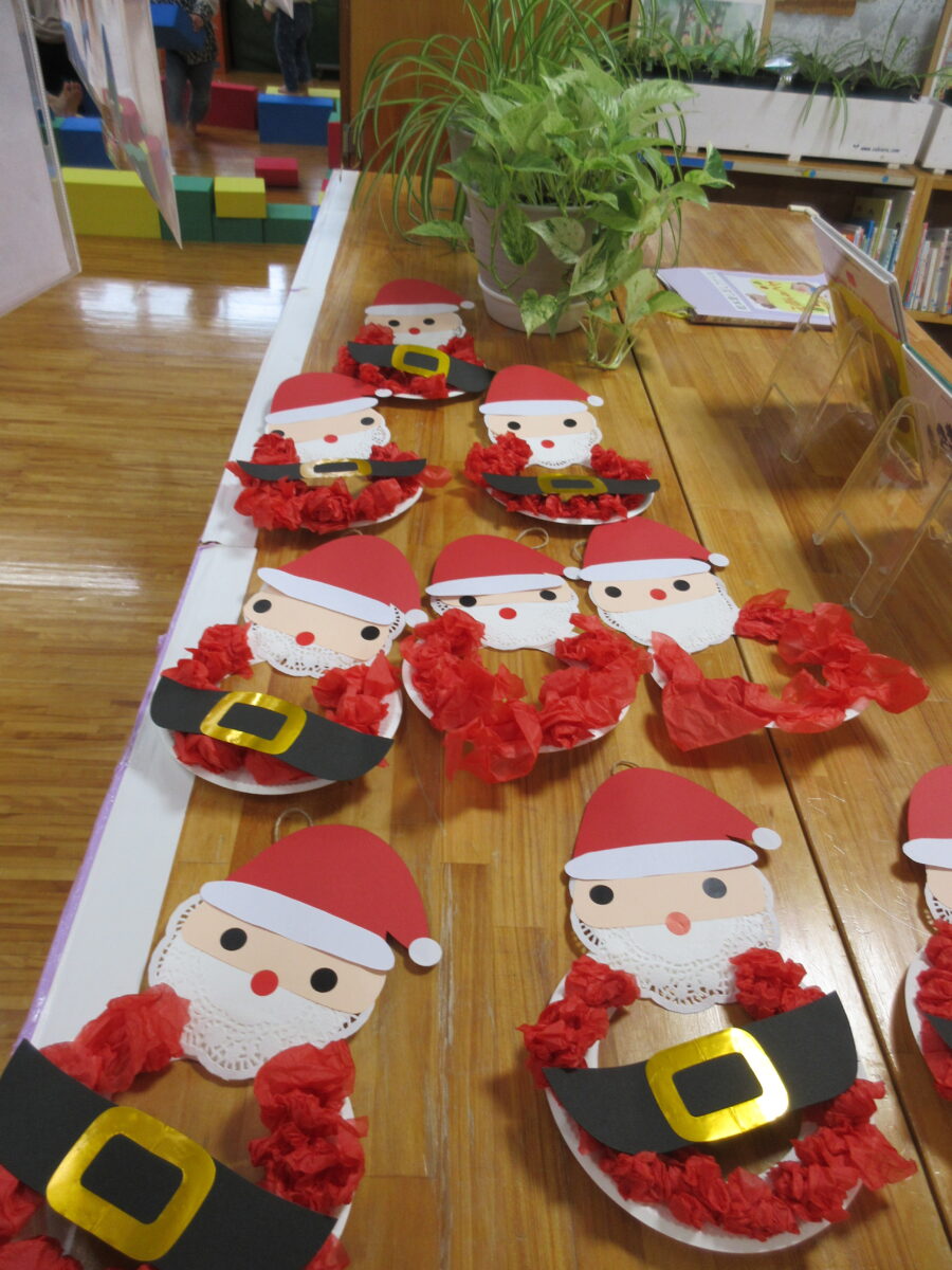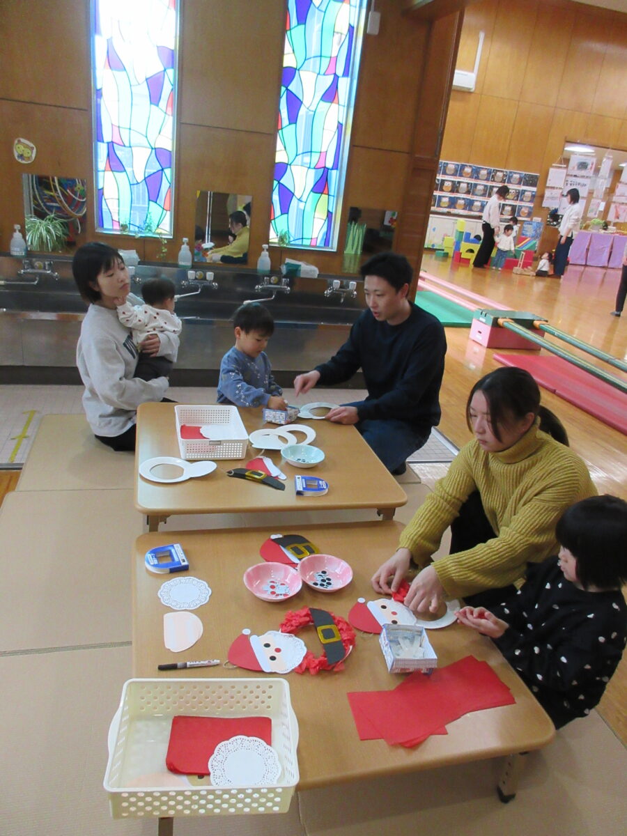 遊戯室ではからだを使う遊びの他に、製作コーナーで「サンタクロース作り」もしました。