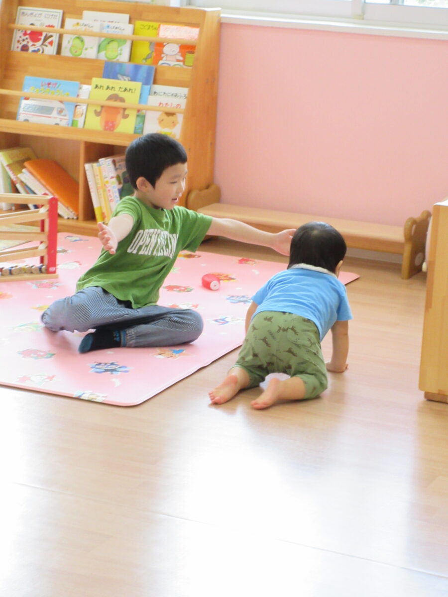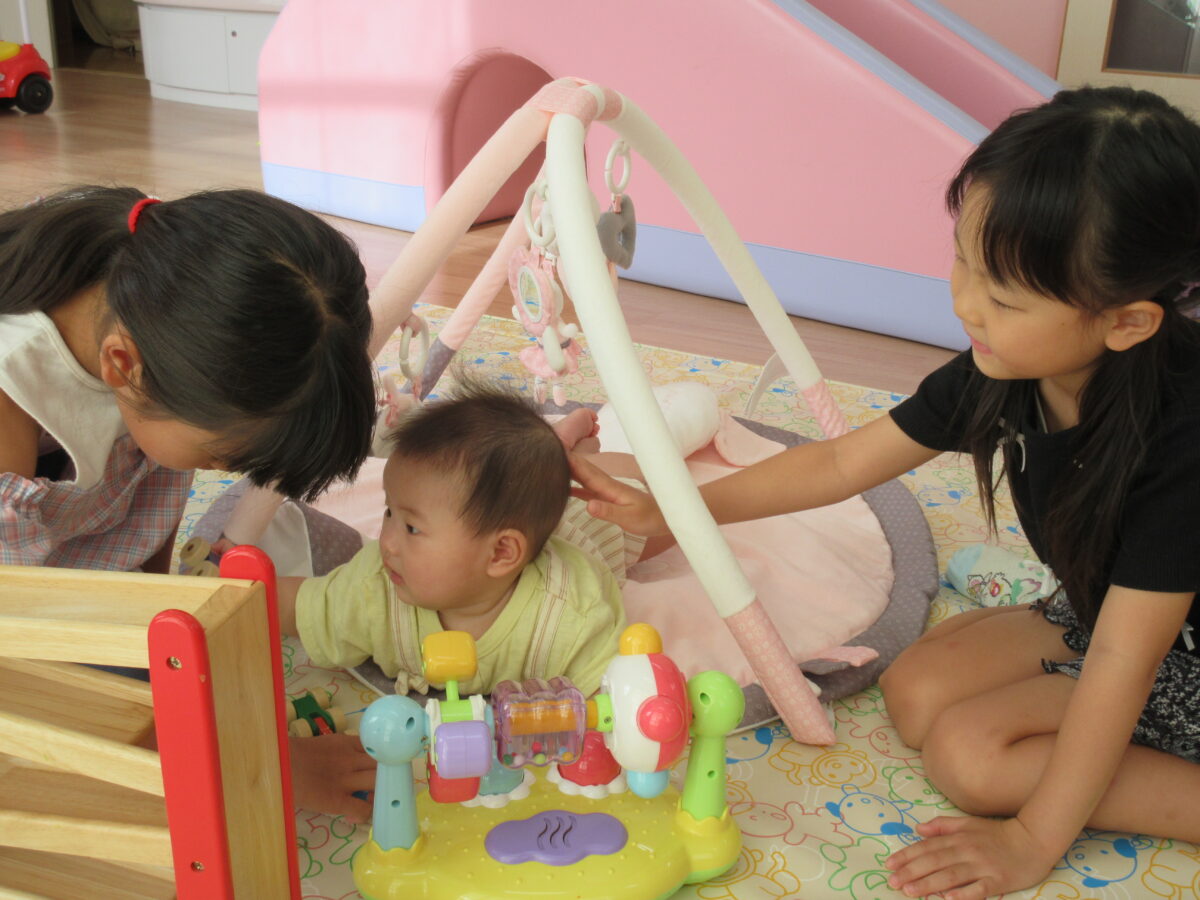 おひさまにつき組さんが遊びに来てくれて、一緒に遊んだりしました。
