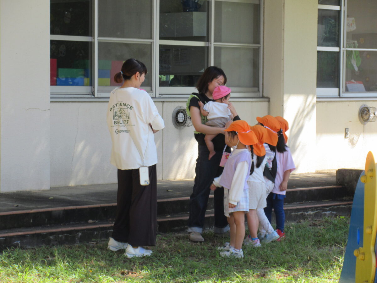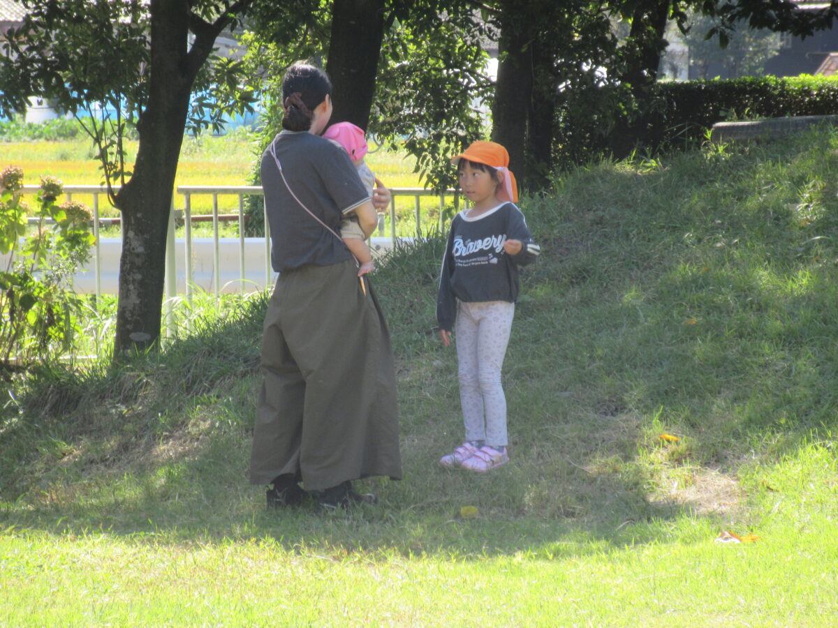 お店屋さんごっこの後は園庭へ遊びに行きました。気持ちよかったですね。