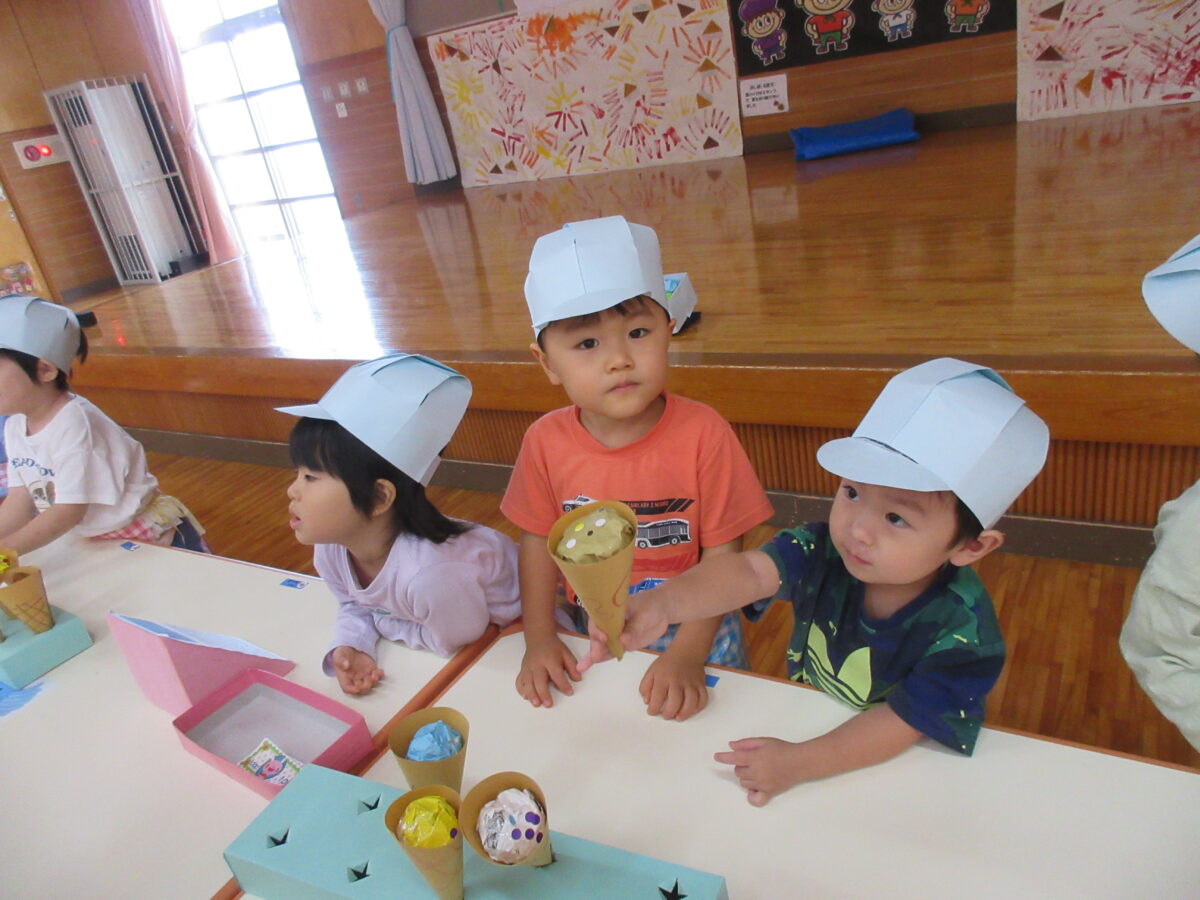 つき組さんと一緒に遊んだり触れ合いを楽しんだ後はお店屋さんごっこへ!