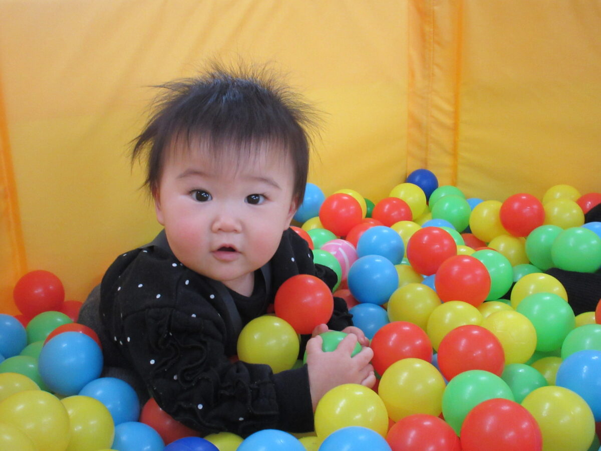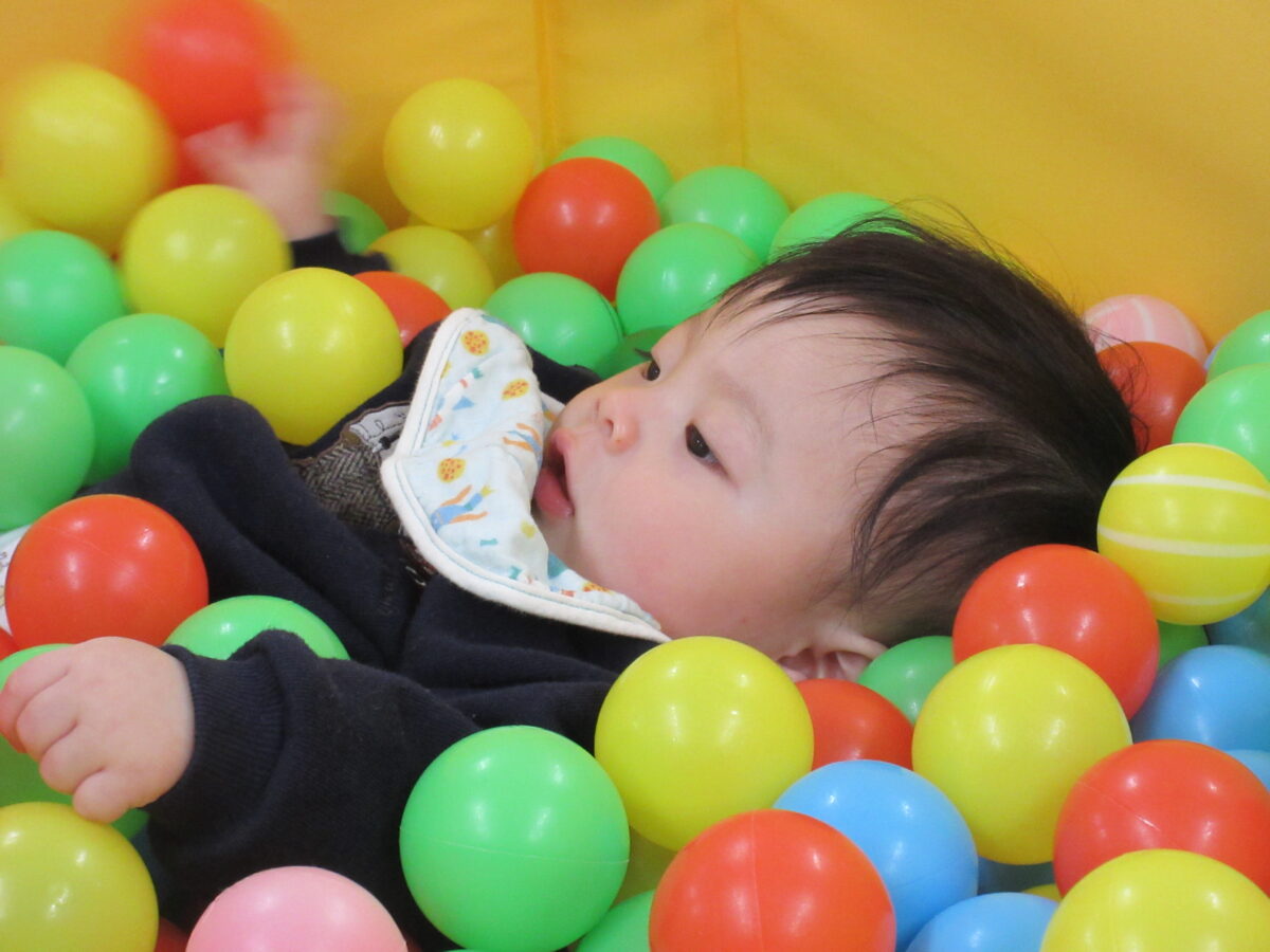 いつもと違うお部屋でひよこ組のお友だちと一緒にボールプールや玩具で遊んで楽しかったですね。