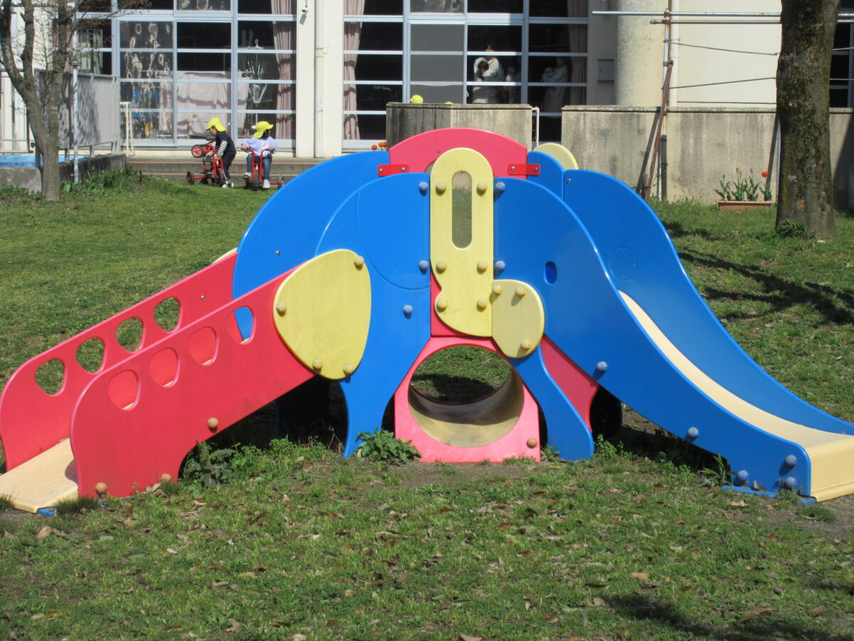 園庭には小さなお友だちが遊べる滑り台などの遊具があります。天気の良い日に一緒に園庭で遊びましょう!