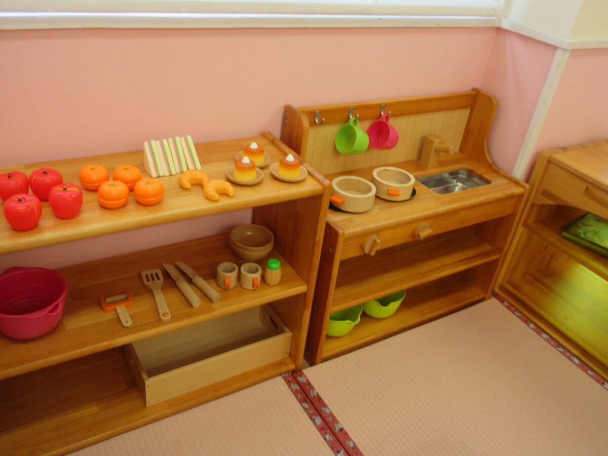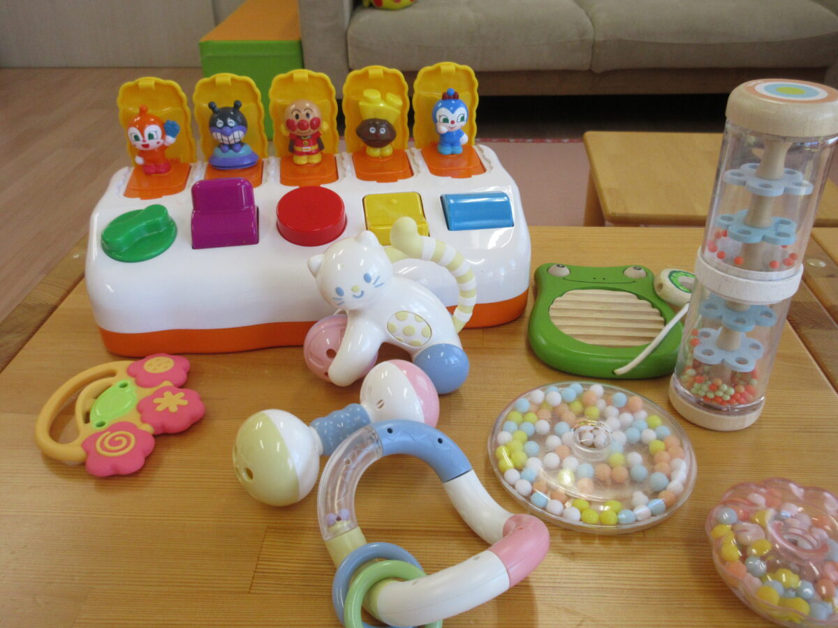 おひさまのお部屋には、ままごとやアンパンマンのコンビカーなどいろんな玩具があります。