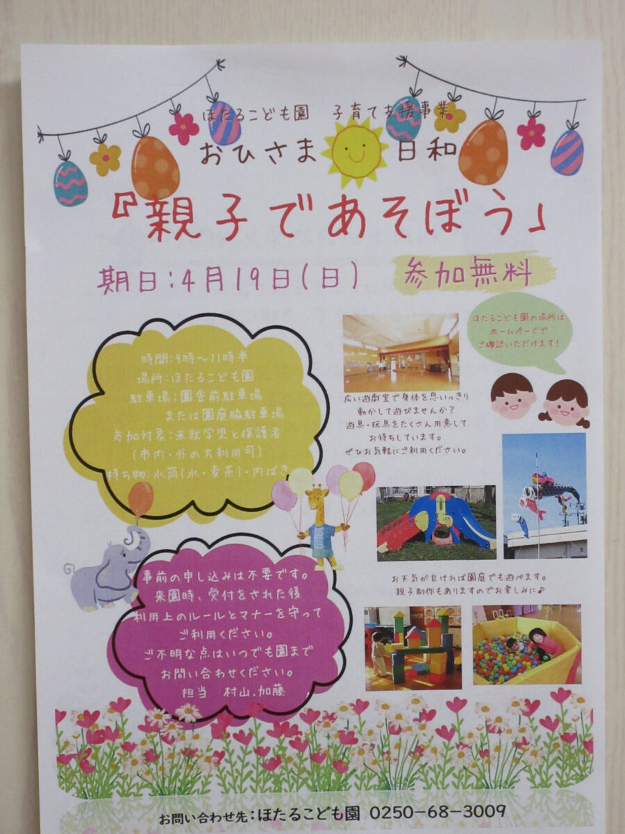 今年度も「おひさま日和!親子であそぼう!」を行います。