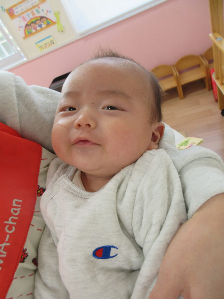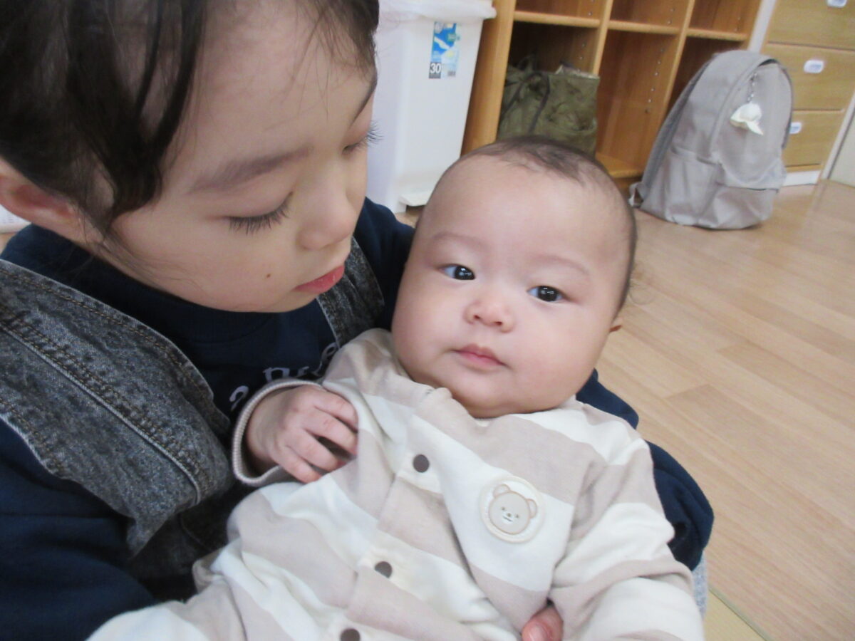 つき組のお兄さん、お姉さんもおひさまに来てくれ、一緒に遊んだり、優しく触れながら「かわいいね。」と言葉をかけてくれていました。