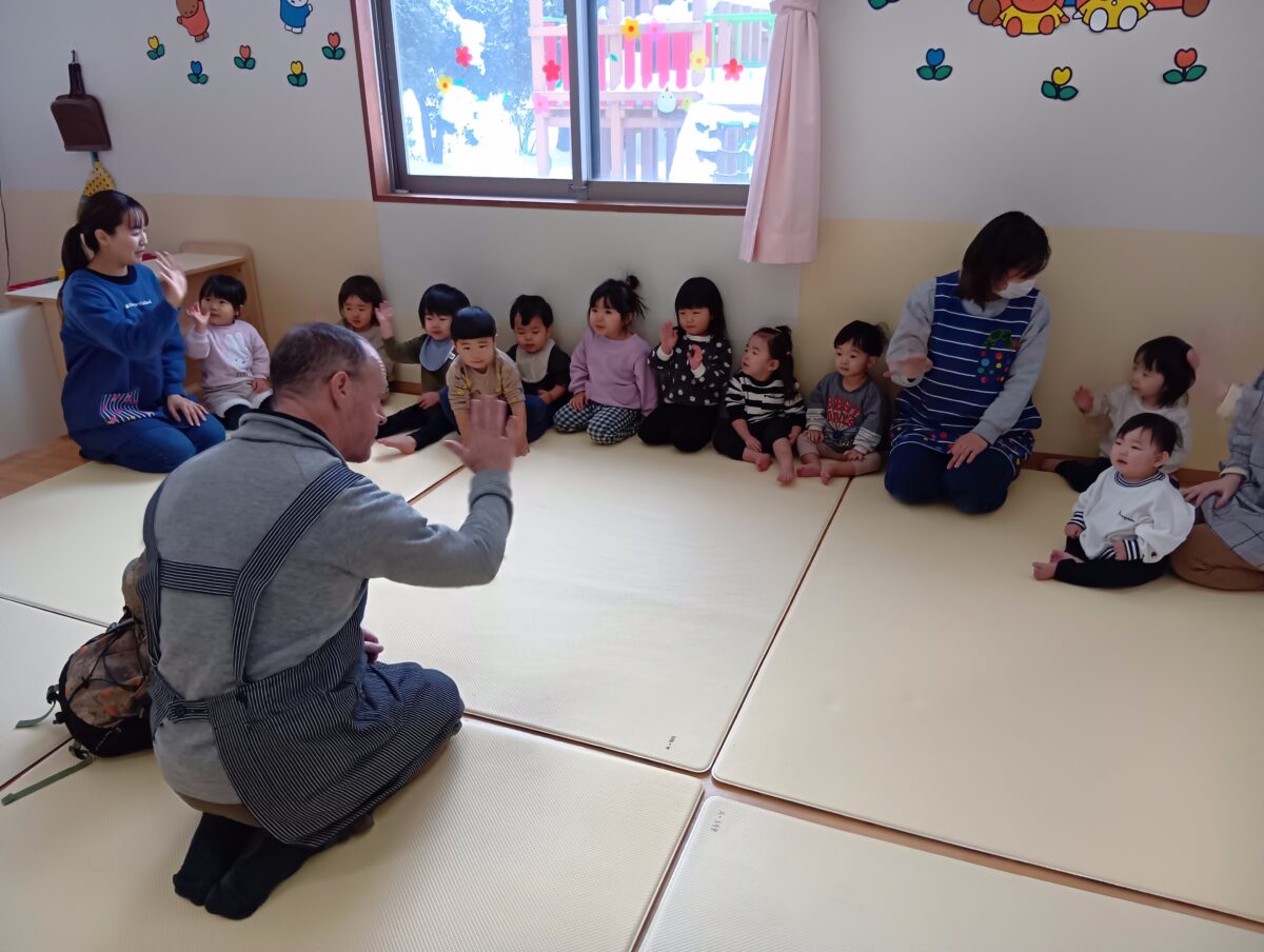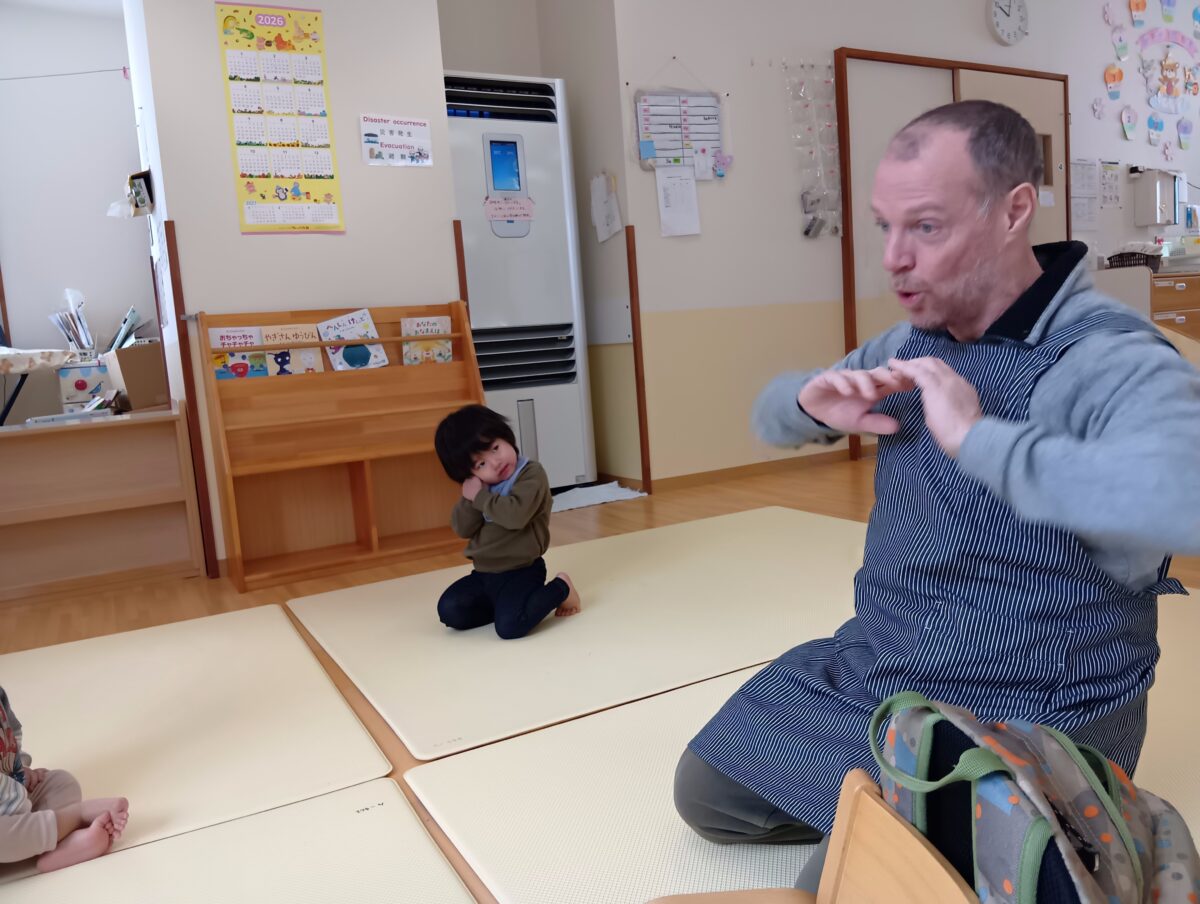 お歌を覚え、べビン先生の真似っこもとっても上手です♪
